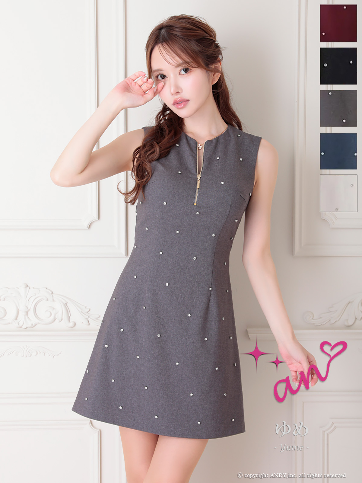 XSサイズあり【an /アン】ビジュー/ バックカットアウト/ ノースリーブ/ フレア/ ワンピース/ ミニドレス/ キャバドレス[OF05] [AOC3796-WR-2411]