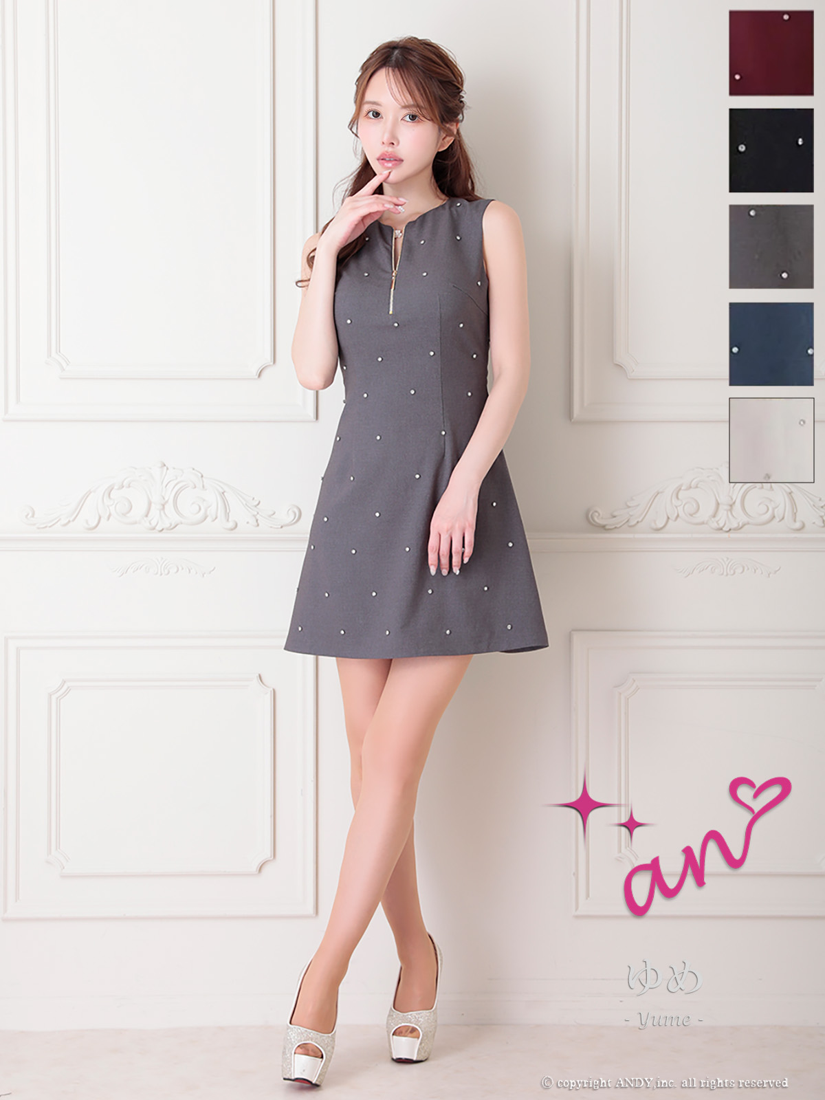 【an/アン】全体に散りばめられたビジューが高級感溢れるフレアミニドレス♡