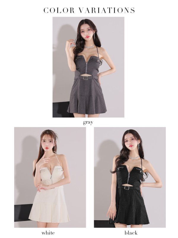 - > XSサイズあり【Glossy/グロッシー】2way/ ストライプ/ バストジップ/ ベルトデザイン/ フレア/ ミニドレス/ キャバドレス[OF08]