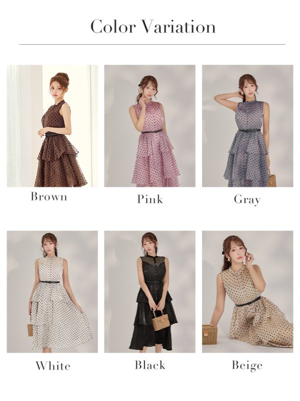 - > XS-Lサイズあり【ROBE de FLEURS/ローブドフルール】ベルト付き/ ドットオーガンジー/ ティアード/ フレア/ ミディアムドレス/ キャバドレス[OF08]
