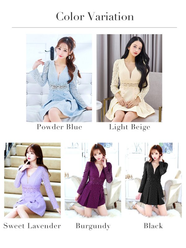 - > XSサイズあり【Donia Quinn / ドニアクイーン】 総レース/ ロングスリーブ/ 袖あり/ ボックスプリーツ/ フレア/ ミニドレス/ キャバドレス[OF05]
