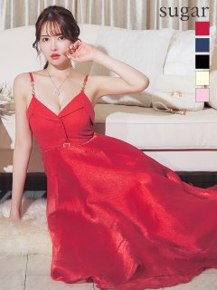- > Lサイズあり【DEA./ディア】シフォン/ キャミ/ ベルトデザイン/ フレア/ ミモレ丈/ ミディアムドレス/ キャバドレス[OF08]