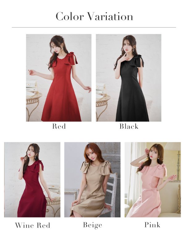 ショルダーリボンがお顔周りを華やかに演出するミディアムドレス♡