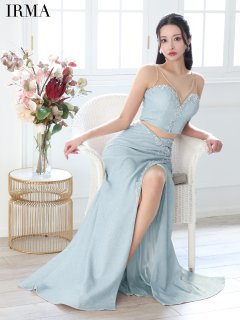 【IRMA/イルマ】ビジュー/ ウエストシアー/ ノースリーブ/ バックスピンドル/ スリット/ ストレッチ/ マーメイド/ ロングドレス/ キャバドレス long【HC02】 [41738-IR-BLGY-2412]