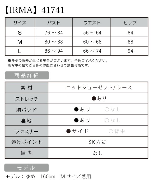 B:80-88 / W:60-68 / H:88 [着丈](脇下)約133 |