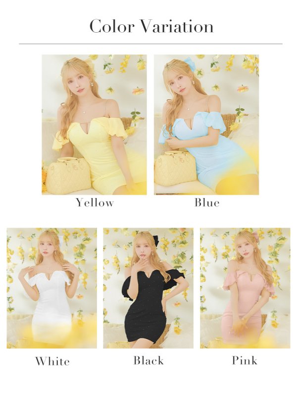 - > XSサイズあり【ANGEL R/エンジェルアール】シフォンショルダー/ オフショル/ Vカット/ ビジュー/ タイト/ ミニドレス/ キャバドレス[OF2]