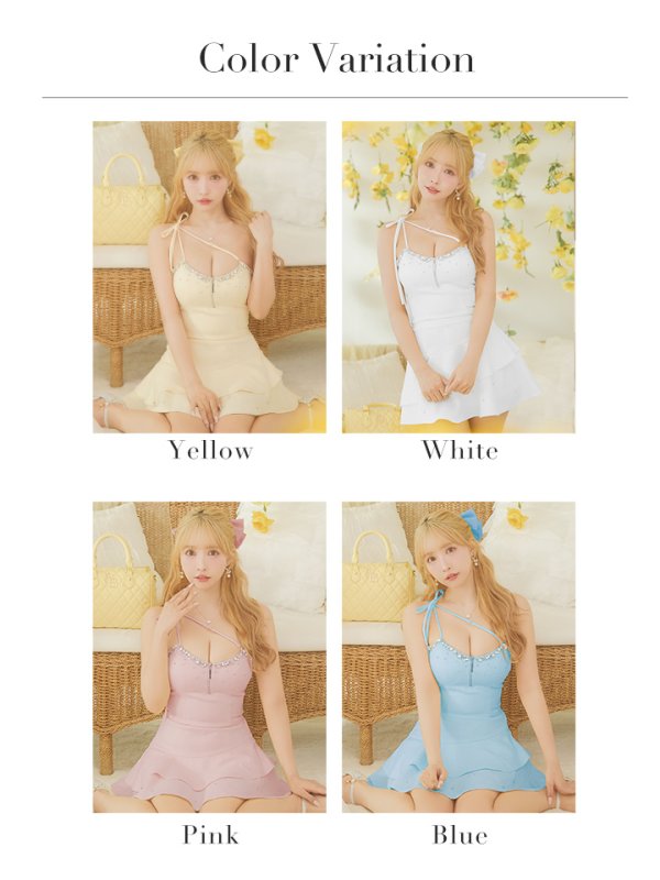 - > XSサイズあり【ROBE de FLEURS/ローブドフルール】アシンメトリーリボン/ ティアードフリル/ セットアップ/ ミニドレス/ キャバドレス[OF08]