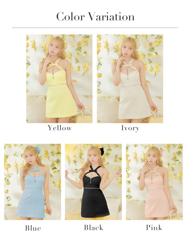 XSサイズあり【ROBE de FLEURS/ローブドフルール】リボンデザインホルター/ ビジュー/ タイト/ ミニドレス/ キャバドレス[OF08]