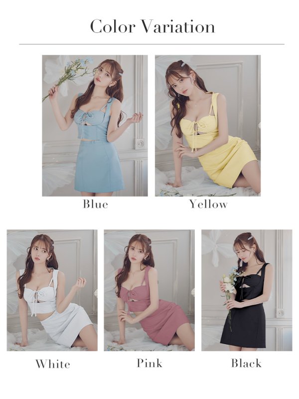 - > XSサイズあり【Glossy/グロッシー】バストリボン/ ストレッチ/ ワッフル/ セットアップ/ ミニドレス/ キャバドレス[OF08]