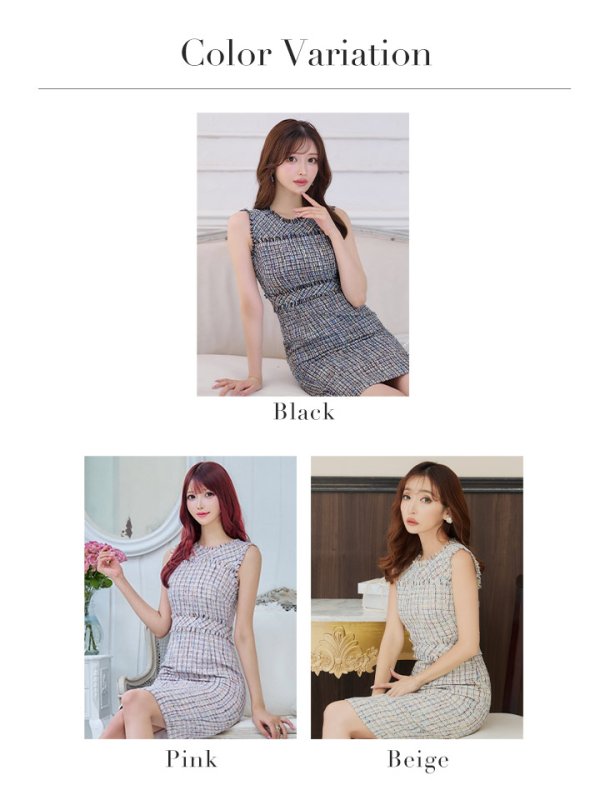 - > XS-Lサイズあり【ERUKEI エルケイ】ツイード/ ノースリーブ/ 膝丈/ミディアムタイト/ ワンピース/ ミニドレス/ キャバドレス[OF2]