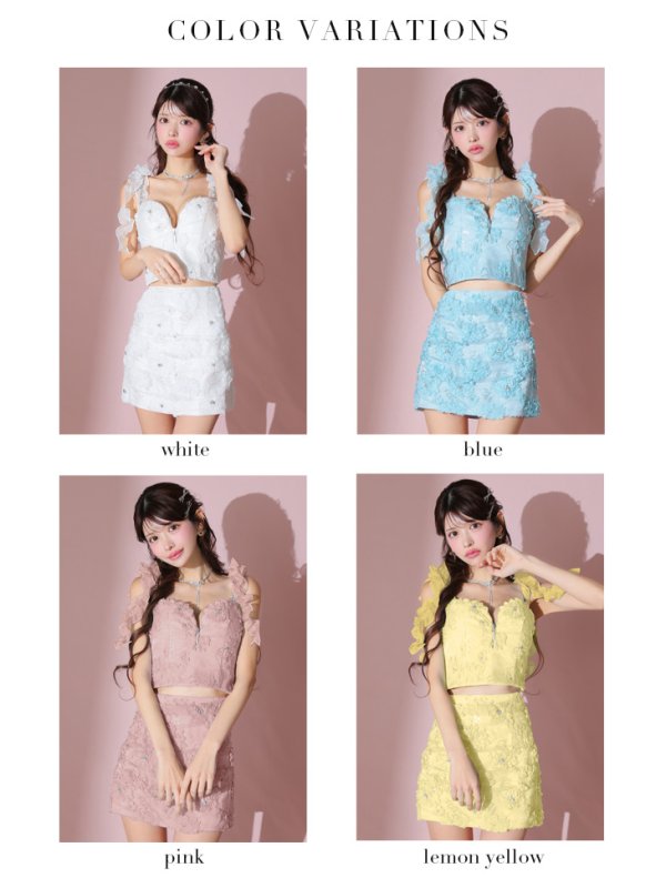 - > XSサイズあり【ROBE de FLEURS/ローブドフルール】フラワーレース/ オーガンジー/ フリル/ タイト/ セットアップ/ ミニドレス/ キャバドレス[OF08]