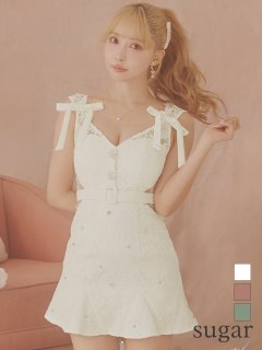 - > XSサイズあり【ROBE de FLEURS/ローブドフルール】フラワーレース/ オーガンジー/ フリル/ タイト/ セットアップ/ ミニドレス/ キャバドレス[OF08]
