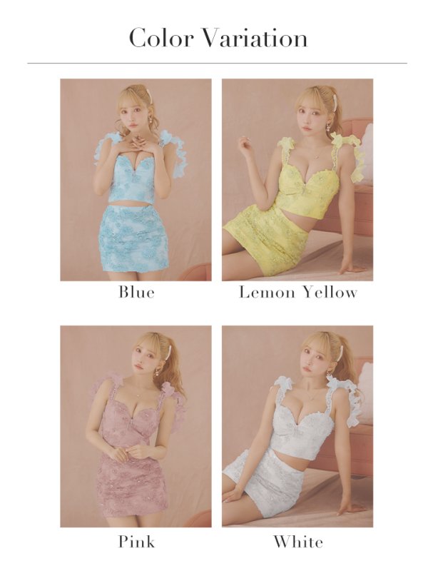 XSサイズあり【ROBE de FLEURS/ローブドフルール】フラワーレース/ オーガンジー/ フリル/ タイト/ セットアップ/ ミニドレス/ キャバドレス[OF08] [FM3448-LemonY-S250110]