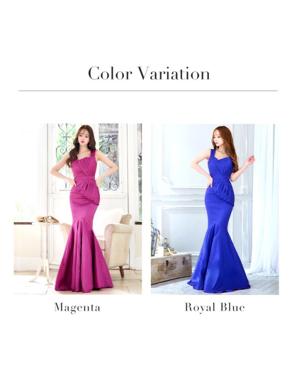 Lサイズあり【UNA VALERIE / ウナヴァレリェ】マーメイド/ プリーツリボン/ アシンメトリー/ ノースリーブ/ ロングドレス/ キャバドレス[OF05]