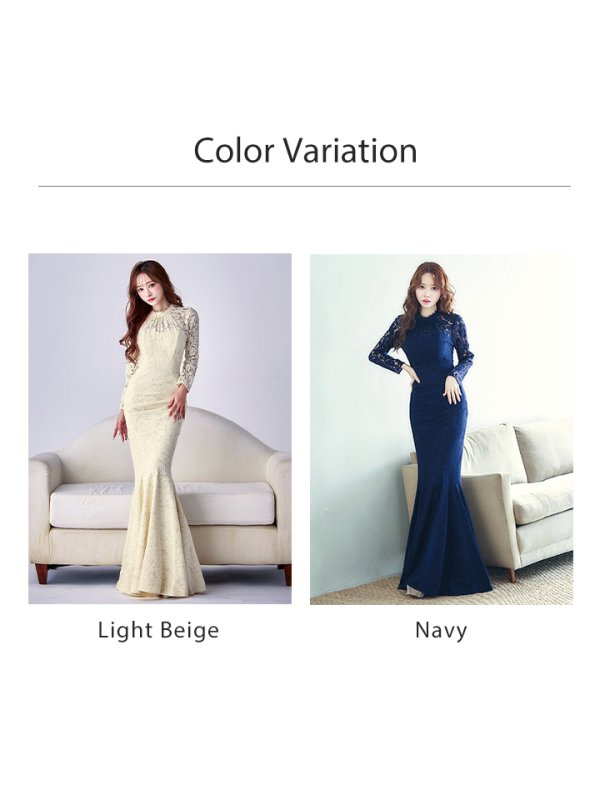 【UNA VALERIE / ウナヴァレリェ】マーメイド/ 総レース/ ロングスリーブ/ 袖あり/ オケージョンドレス/ ロングドレス/ キャバドレス[OF05] [V60176L-BGD-S2501]