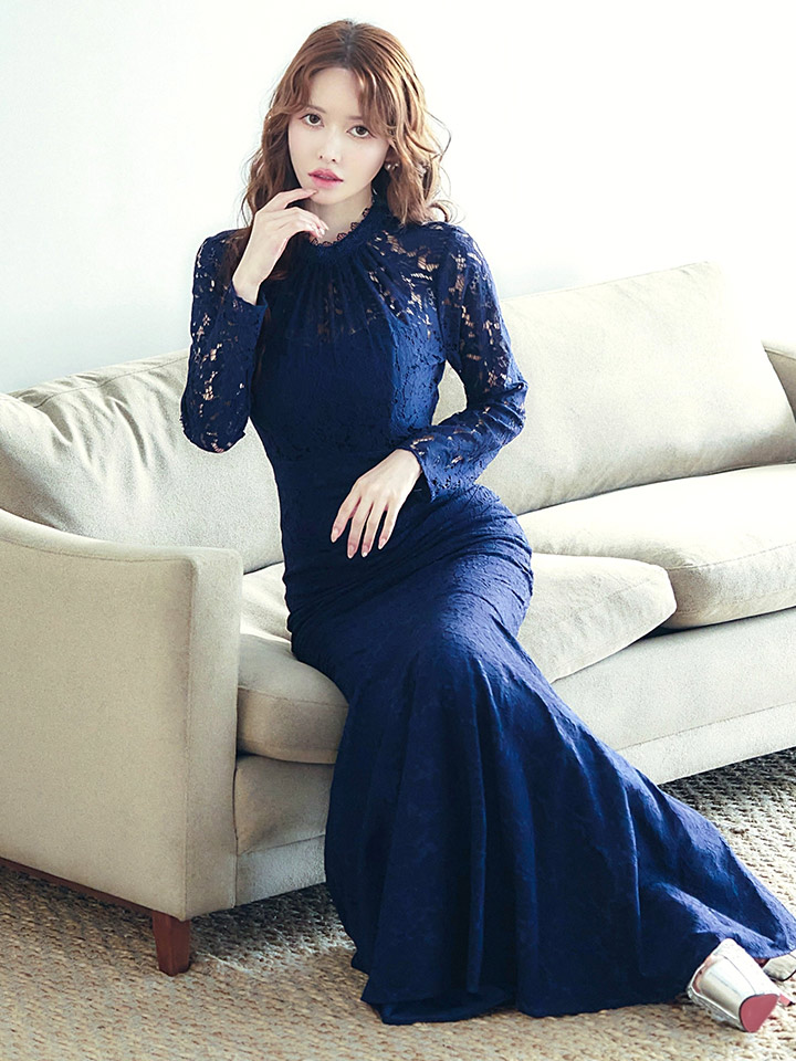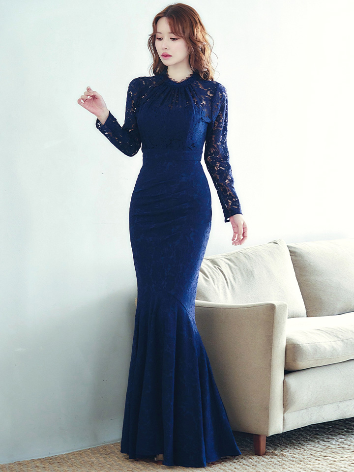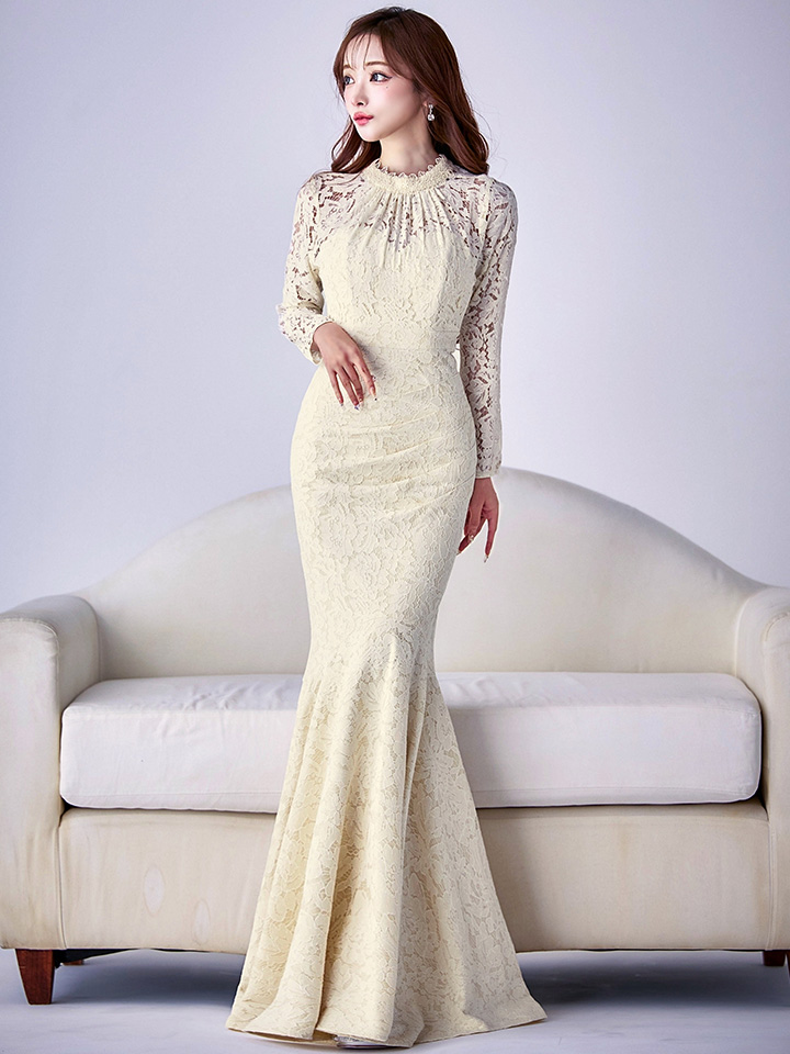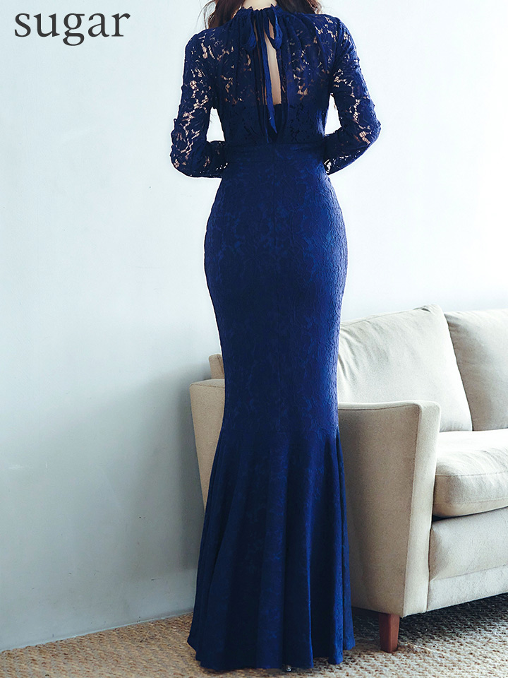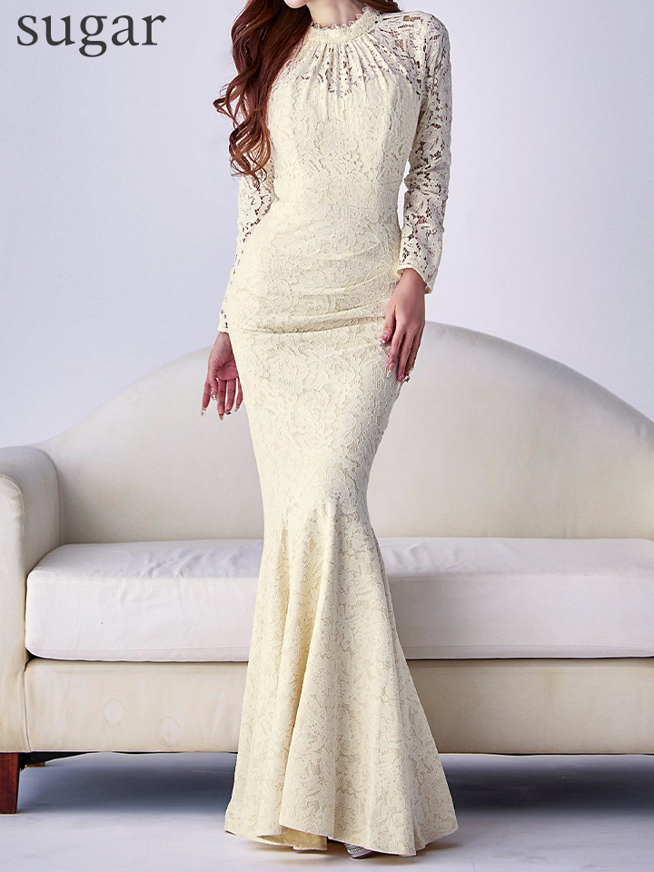 【UNA VALERIE / ウナヴァレリェ】マーメイド/ 総レース/ ロングスリーブ/ 袖あり/ オケージョンドレス/ ロングドレス/ キャバドレス[OF05]