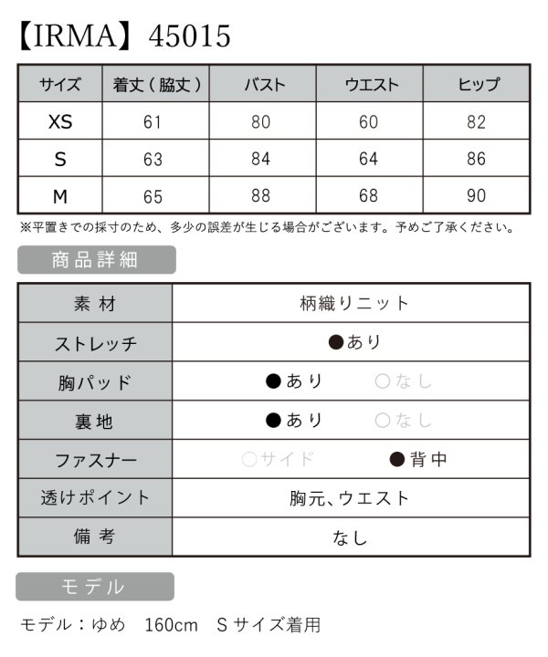 B:84 / W:64 / H:86 [着丈](脇下)約63cm |