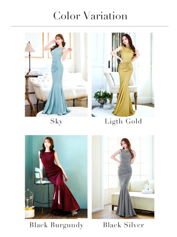 上品に煌めくラメニットが華やかなマーメイドロングドレス