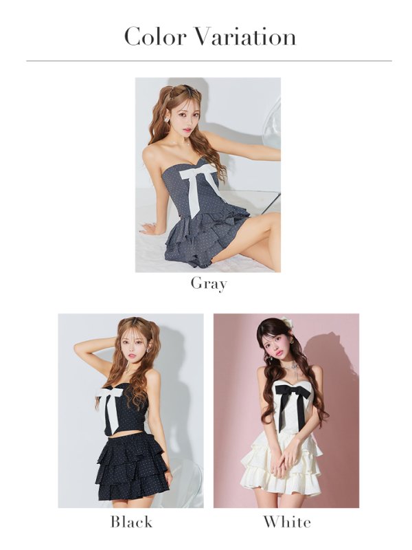 XSサイズあり【ROBE de FLEURS/ローブドフルール】ビッグリボン/ ティアード/ フレア/ ミニドレス/ キャバドレス[OF08] [FM3769-GY-S250116]