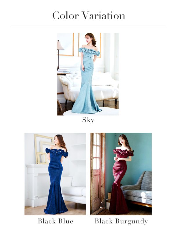 ボリューム感たっぷりのフリルオフショルが華やかなマーメイドロングドレス♡
