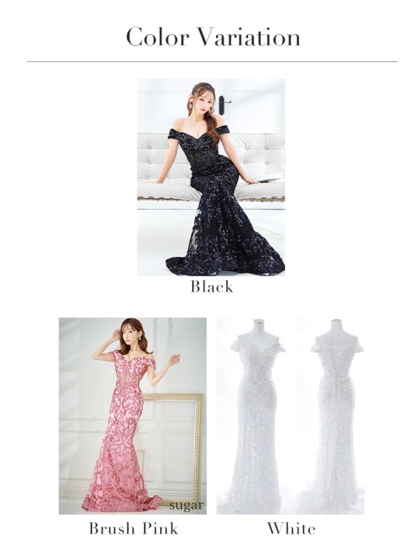 贅沢に施されたスパンコール刺繍がゴージャスなマーメイドロングドレス♡