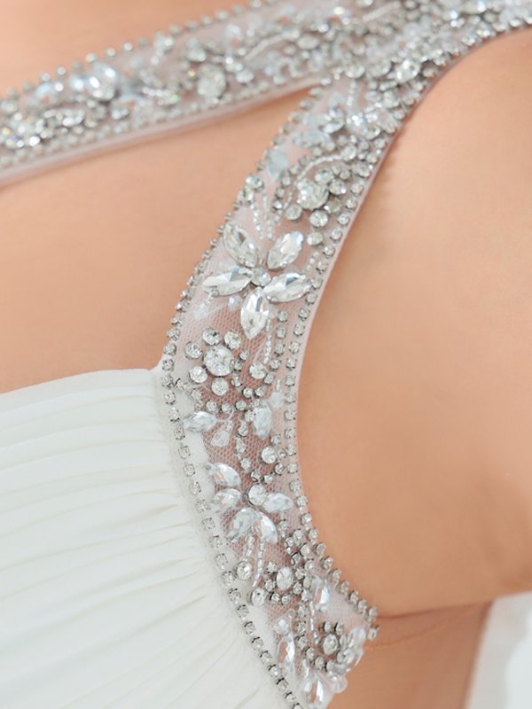 ショルダーラインにあしらったビジューが華やかに輝くタイトミニドレス。