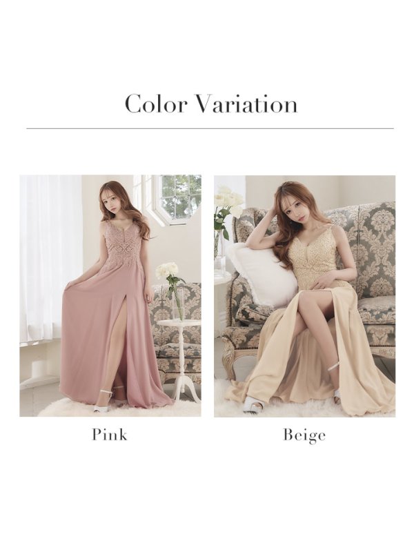 XS-Lサイズあり【SETTAN/セッタン】刺繍レース/ シアー/ キャミソール/ スリット/ Aライン/ ロングドレス / キャバドレス long[OF2] [LKS36121-BE-S2501]