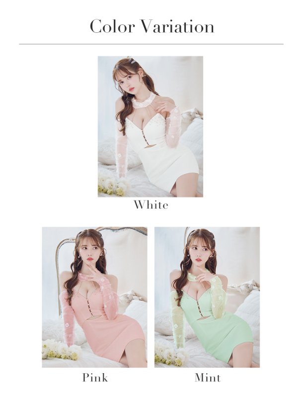 - > XSサイズあり【ANGEL R/エンジェルアール】ロングスリーブ/ ホルターネック/ ウエストカット/レース/ ビジュー/ メッシュ/ ミニドレス/ キャバドレス[OF2]