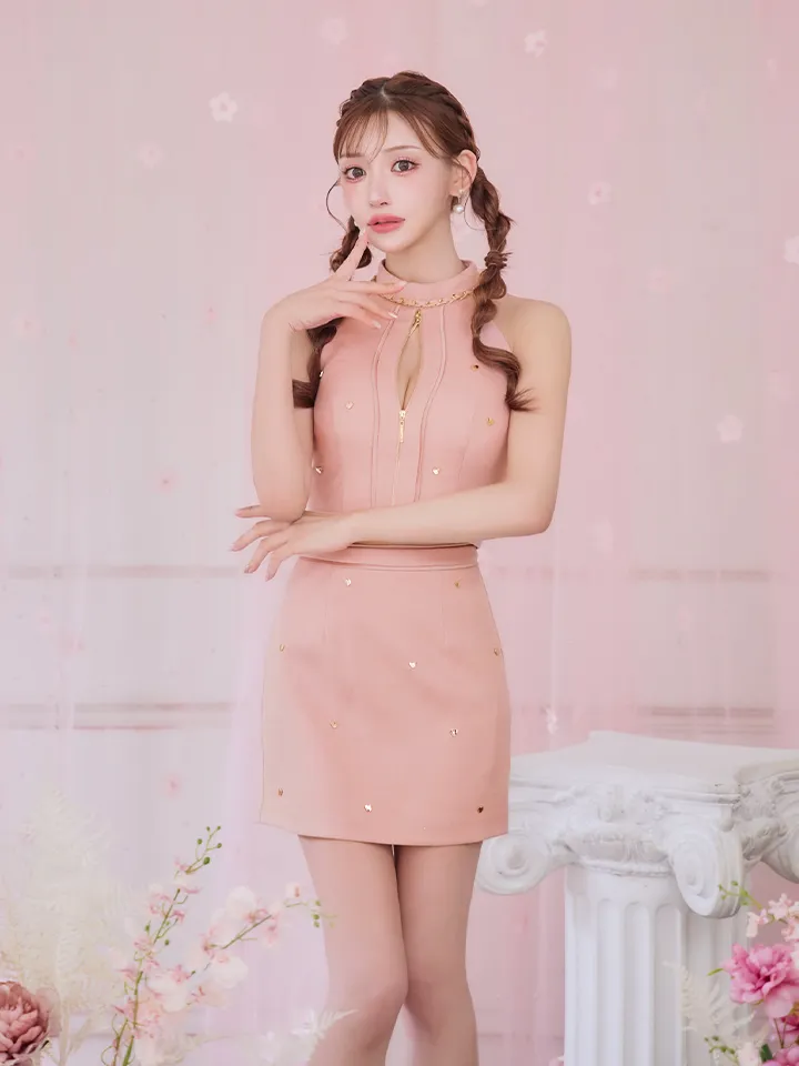 - > XSサイズあり【ROBE de FLEURS/ローブドフルール】ハートスタッズ/ バストジップ/ セットアップ/ タイト/ ミニドレス/ キャバドレス[OF08]【一部予約商品/1月上旬発送予定】