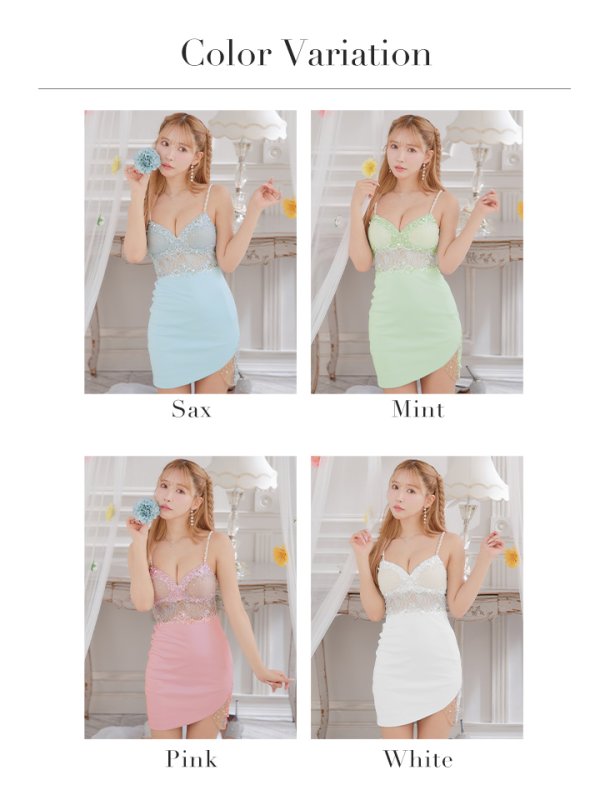 - > XSサイズあり【ANGEL R/エンジェルアール】ウエストレースデザイン/ パールショルダー/ ビジュー/ ミニドレス/ キャバドレス[OF2]