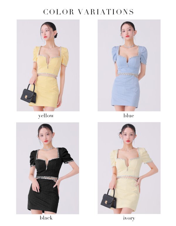 - > XSサイズあり【Glossy/グロッシー】ビジュー/ リブニット/ ウエストシアー/ タイト/ セットアップ/ ミニドレス/ キャバドレス[OF08]