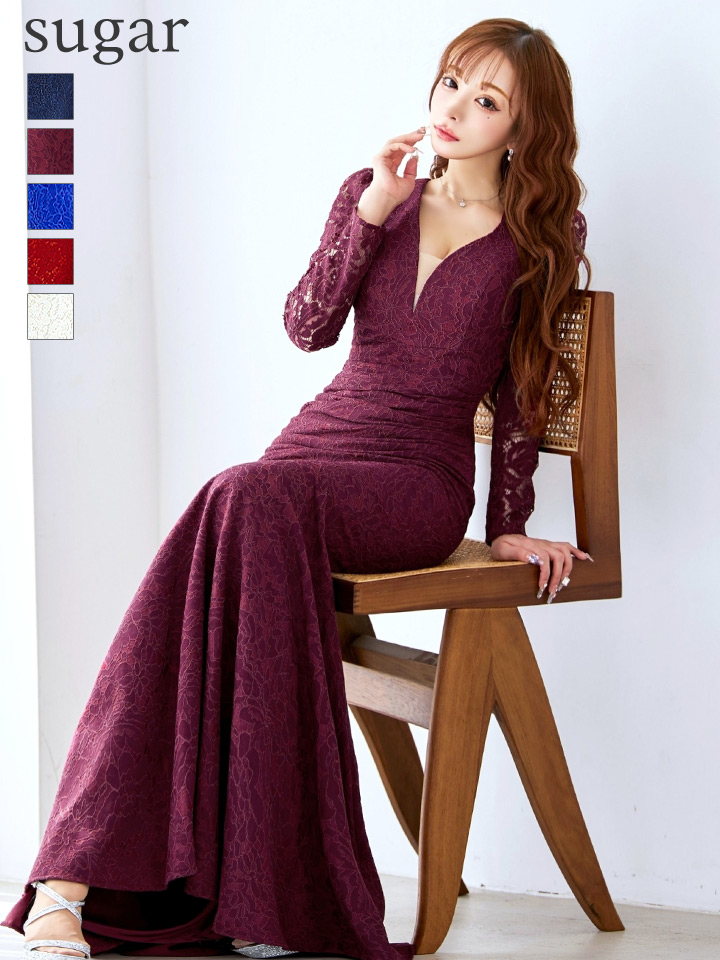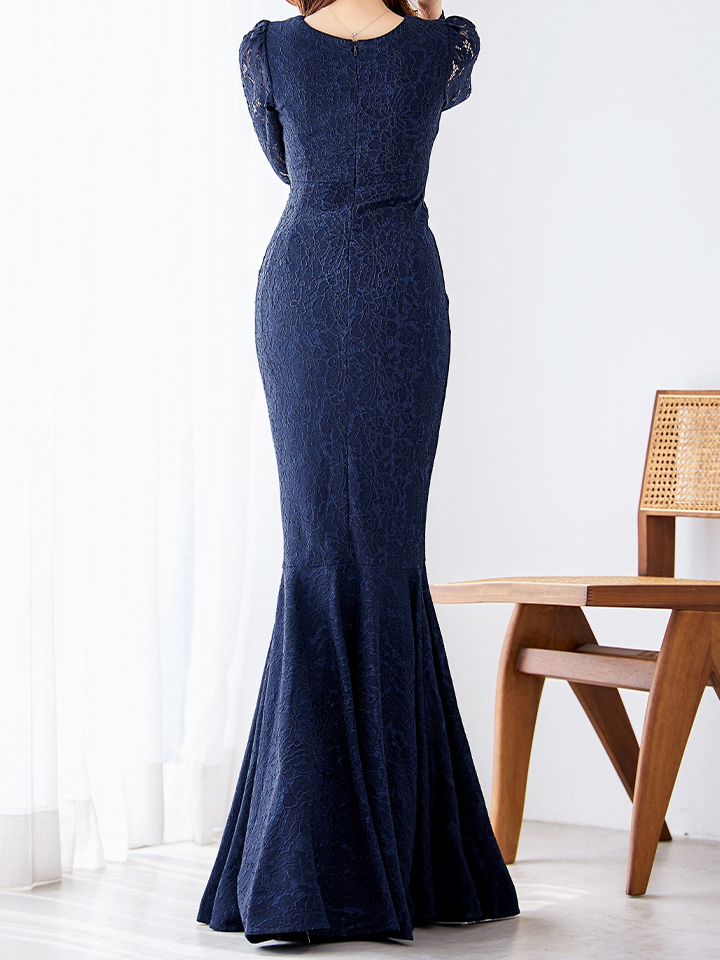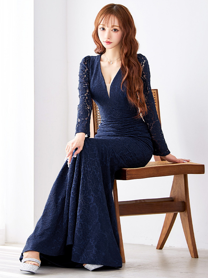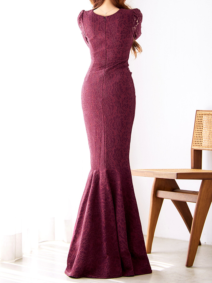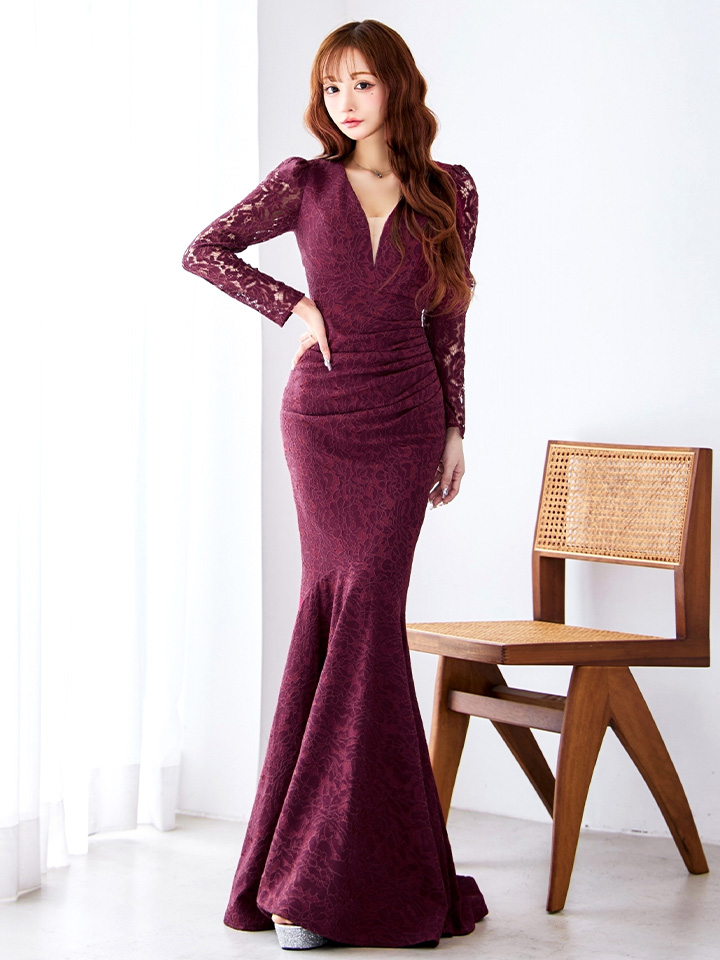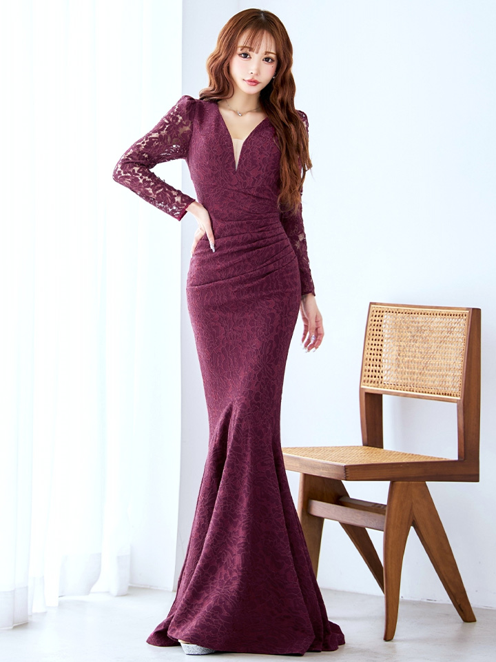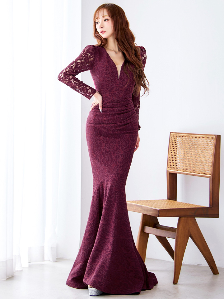 エレガントなフラワーレースが大人の気品溢れるマーメイドロングドレス