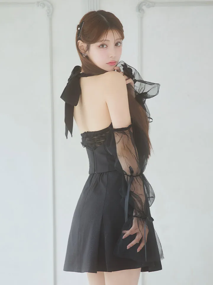 リボン付きチュールスリーブがエレガントな雰囲気のセットアップミニドレス♡