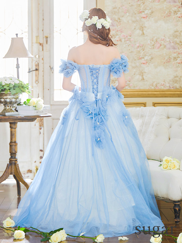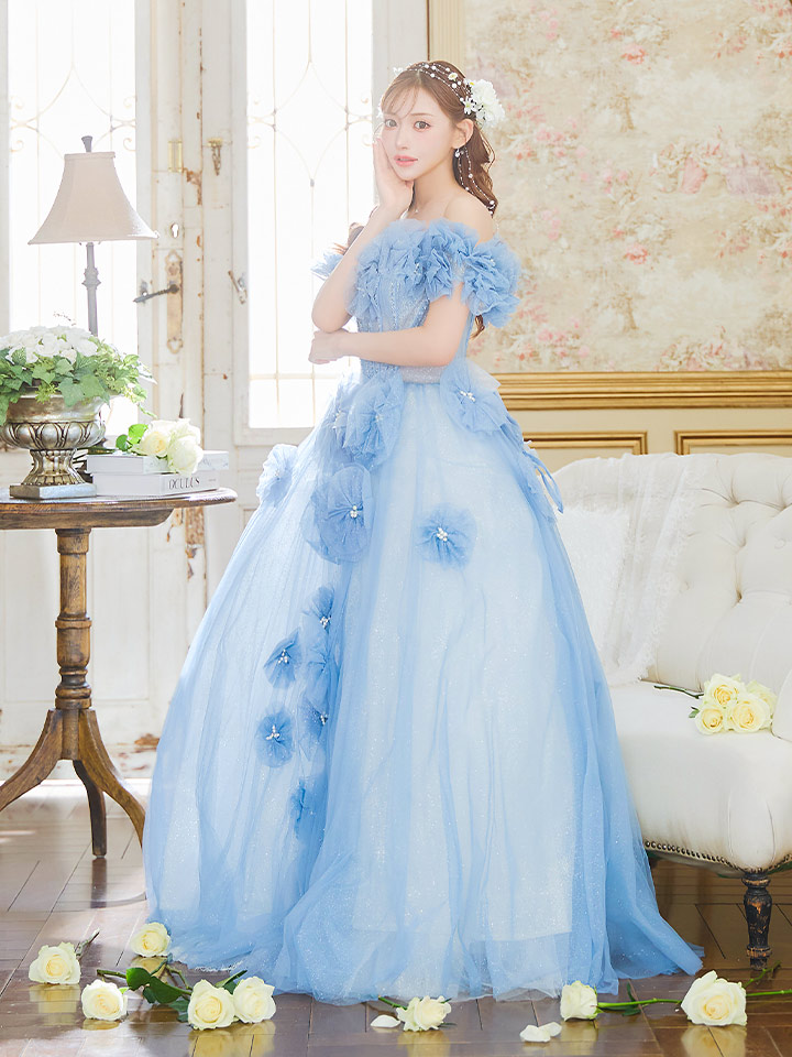 立体的フラワーが華やかなプリンセスロングドレス