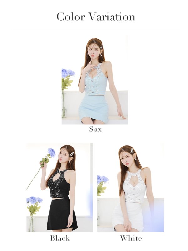 - > XSサイズあり【ANGEL R/エンジェルアール】ホルターネック/ ボタン/ フラワーレース/ ビジュー/ セパレート/ マイクロミニドレス/ キャバドレス[OF2]
