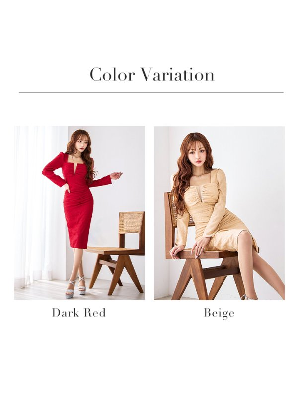 - > Lサイズあり【VANESSA HEART / ヴァネッサハート】【OF05】スクエアネック/ 長袖/ 袖あり/ タック/ひざ丈/ タイト/ ワンピース/ ミディアムドレス/ キャバドレス