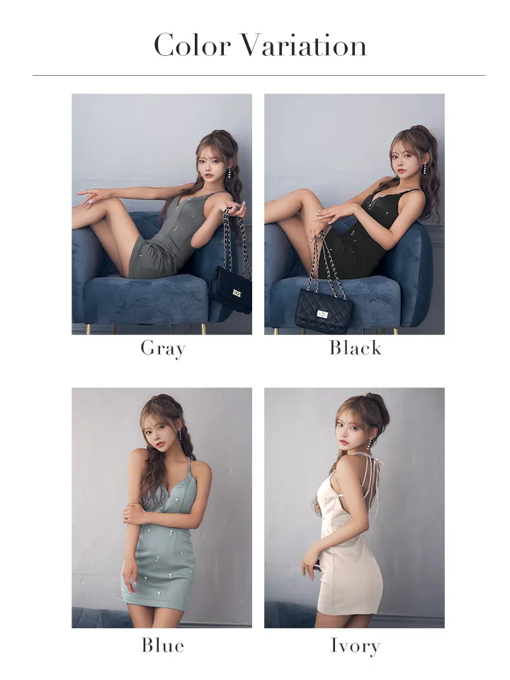 - > XSサイズあり【Glossy/グロッシー】ビジュー/ ホルター/ シンプル/ タイト/ ミニドレス/ キャバドレス[OF08]