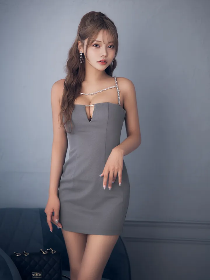 - > XSサイズあり【Glossy/グロッシー】デコルテビジュー/ バストカット/ シンプル/ タイト/ ミニドレス/ キャバドレス[OF08]