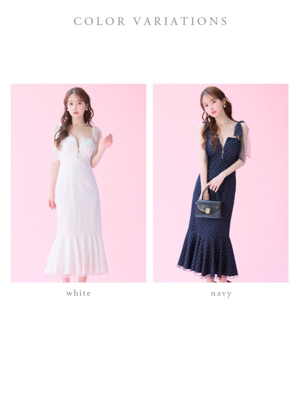 Lサイズあり【DEA./ディア】ドットチュール/ マーメイド/ キャミ/ ミディアムドレス/ キャバドレス long[OF08] [DE3380-W-2502]