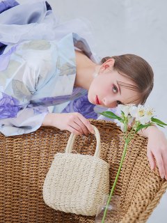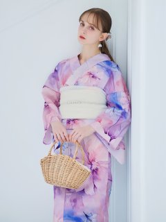 爽やかなミントとベビーブルーの色味がたまらない清涼感溢れる水彩大柄浴衣。