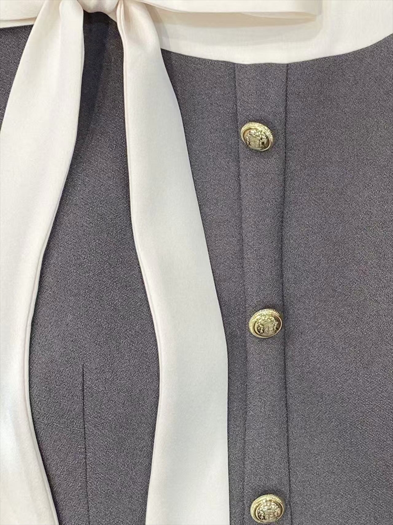 ゴールドボタンxプリーツスカートがクラシカルな雰囲気を演出し、ハイウエストデザインでスタイルUP効果◎