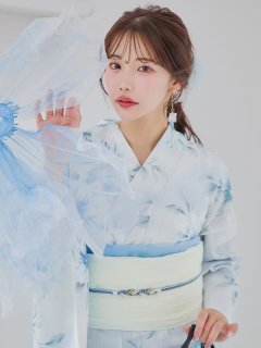 澄み渡る白地に、水色の牡丹やアネモネのような花がふんわりと浮かび上がる浴衣。