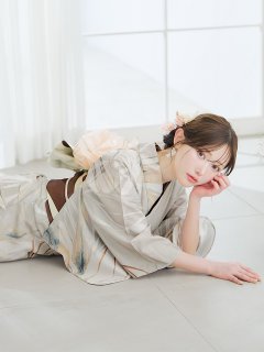 ピュアなホワイト地に咲き誇る水彩牡丹がロマンティックな和モダン浴衣<