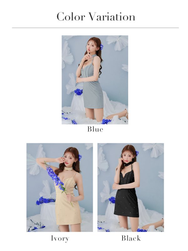 - > XSサイズあり【Glossy/グロッシー】チョーカーデザイン/ バストカット/ ビジュー/ ミニドレス/ キャバドレス[OF08]