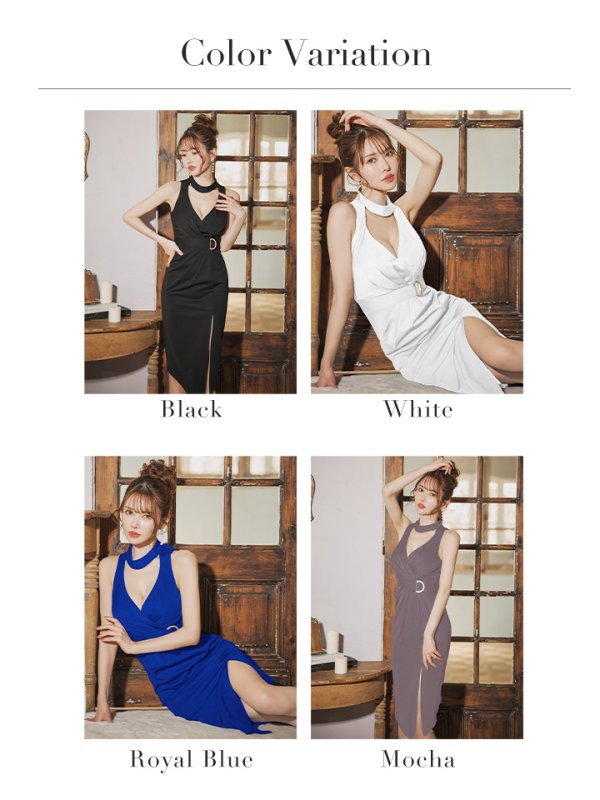 - > XSサイズあり【Veautt/ヴュート】【OF05】チョーカーデザイン/ Vカット/ ウエストタック/ ミディアムドレス/ キャバドレス
