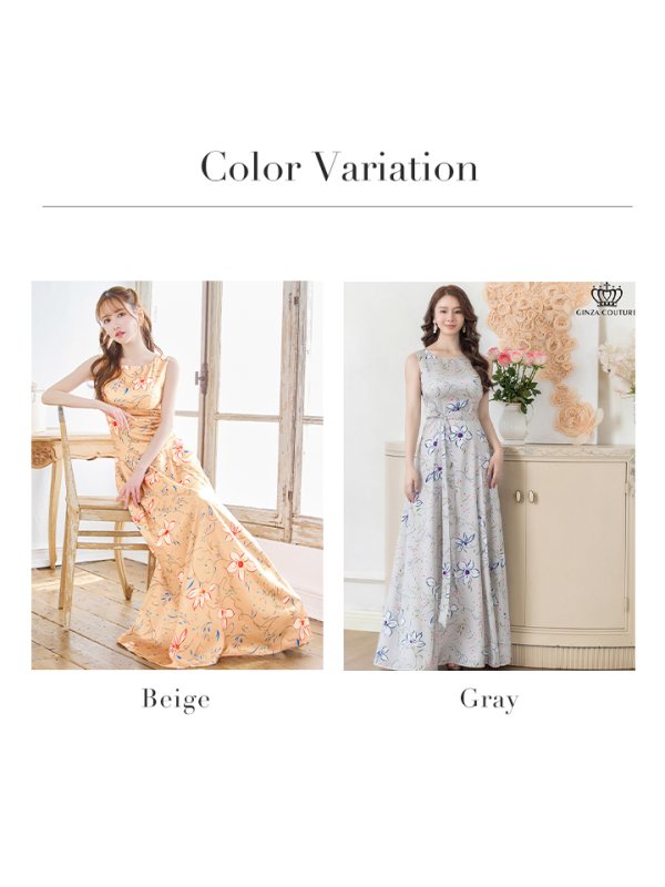 XS-Lサイズあり 【GINZA COUTURE/銀座クチュール】フラワープリント/ ノースリーブ/ ウエストリボン/ フレア/ Aライン/ ロングドレス/ キャバドレスlong[OF2] [LKC24018-BE-S250311]