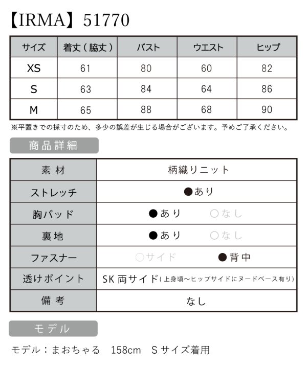B:80 / W:60 / H:82 [着丈](脇下):約61cm |