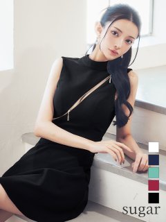 【ANDY/アンディ】デコルテチェーン/ フロントジップ/ 半袖/ 袖あり/ シンプル/ ストレッチ/ セットアップ/ タイト/ ミニドレス/ キャバドレス[OF05]