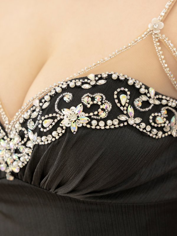 フェミニンなビジューデザインが乙女心をくすぐるタイトミニドレス。