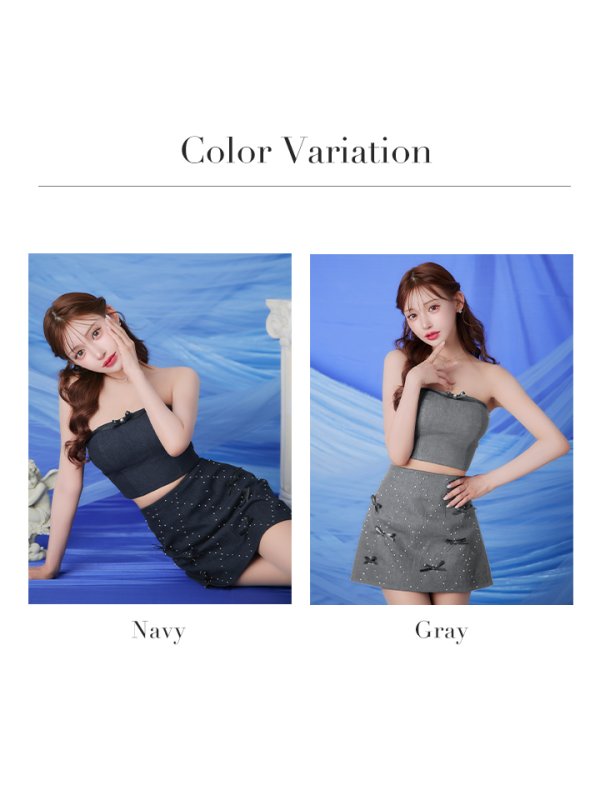 XSサイズあり【ANIER./アニエル】【ROBE de FLEURS/ローブドフルール】Leather ribbon denim bare setup mini dress/ レザーリボン/ デニム/ ベア/ セットアップ/ ミニドレス/ キャバドレス[OF02] [ANIER4048-GY-S250319]